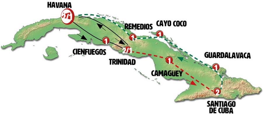 We’ll journey through beautiful landscapes of tropical hills as we make our way to the northern coast. Our first stop will be a peaceful stroll through the charming center of Holguín, before continuing to Guardalavaca, where we’ll visit the Chorro de Maíta Archaeological Park. This remarkable site preserves the remains of an ancient village and an indigenous cemetery with 62 human skeletons, offering a window into Cuba’s pre-Columbian past. We’ll also explore the Taíno Village, a life-sized reconstruction that brings to life the everyday scenes of the island’s original inhabitants. Our journey will take us next to Bariay Bay, a place of breathtaking natural beauty. Lunch will be included. In the afternoon, you’ll have free time to enjoy the resort and relax on the stunning beaches of Guardalavaca. Dinner will be included at the hotel.
