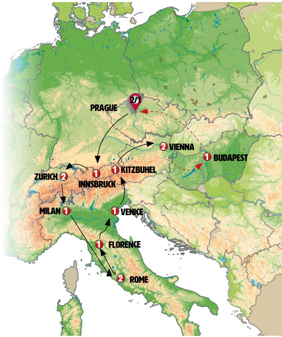 Note: If there are few travelers, we may take a train from Venice to Innsbruck.