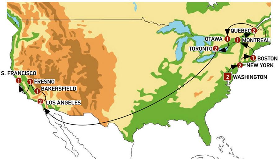 After breakfast, we will go to the beautiful town of NIAGARA ON THE LAKE. After strolling around for some time, we will continue to Niagara Falls. Once there, we will take photos of the Floral Clock before we get on the Hornblower Niagara Cruise, a small boat that will take us to the foot of the famous falls. We will later have some free time to enjoy the Clifton Hill attractions. In the late afternoon we will arrive to our hotel in Niagara Falls.