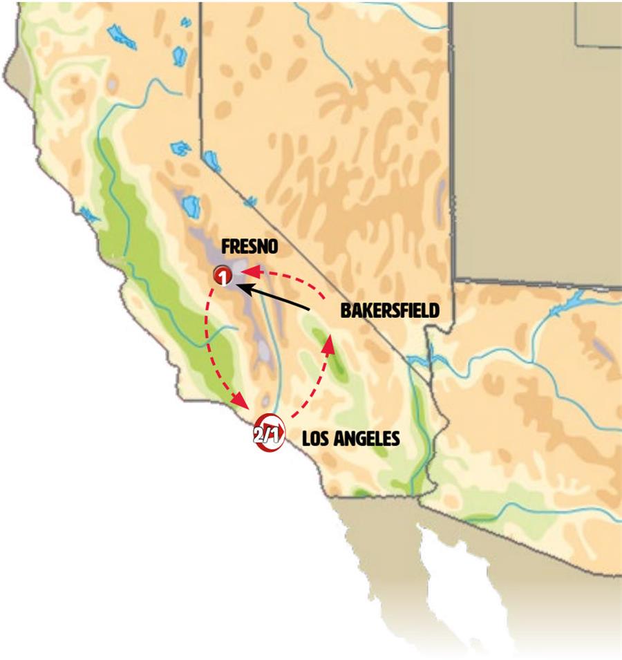 We leave the desert behind to visit the Yosemite Natural Park, one of the most beautiful mountain landscapes in the world. We will get to know its great icons: El Capitan, El Half Dome and its waterfalls. Free time for lunch. Arrival in Fresno.