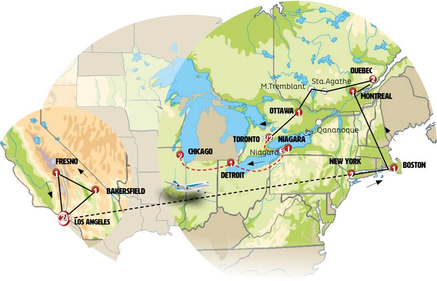 After breakfast, we cross two Eastern US states that have the most spectacular scenery: New Hampshire and Vermont, stopping at WOODSTOCK (Vermont), a beautiful town with restored Georgian houses. We cross the Canadian border and arrive at Montreal. Accommodation.