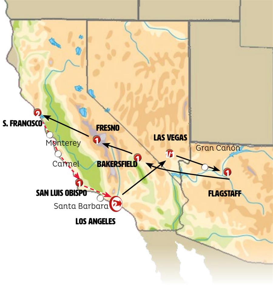 After breakfast, we include a city tour of the city, we will pass through Union Square with its trams, the famous Chinatown, Financial District, the Theater District, Civic Center and Alamo Square, where we can see the famous painted Victorian houses, with the contrast to the background of the modern city, which has been the scene of countless films. We will pass through the Castro neighborhood to reach the Twin Peaks hill, where we will have a panoramic view of the city and the bay. We continue through the historic hippie neighborhood of "Haight Ashbuty", and continue to Golden Gate Park where we will make a stop. We continue to the Golden Gate Bridge where we will finish the visit of the city. Free afternoon during which you can take an optional tour to the city of Sausalito, with incredible views of San Francisco and the bay. In the evening we include a night transfer to North Beach, "Little Italy", the authentic nightlife heart of the city, full of restaurants.