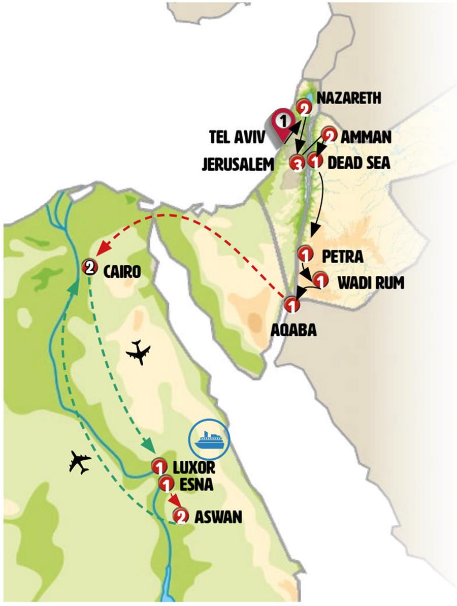 Note: Depending on the number of travellers, the trip from Aqaba to Amman may be made by regular VIP coach.