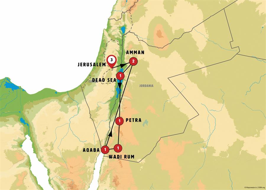 Note: Depending on the number of travellers, the trip from Aqaba to Amman may be made by regular VIP coach.
