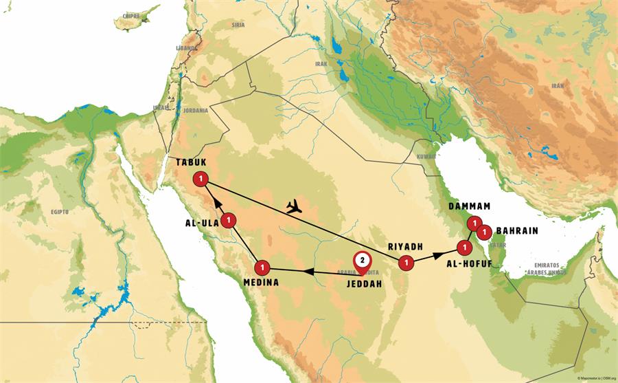 Early morning we will go to the airport. We include a flight to Riyadh. Flight of just over an hour and a half. Arrival in RIYADH, directly from the airport we will start our city tour.