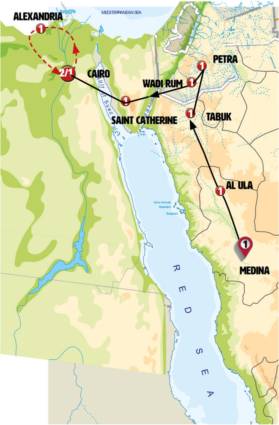 IMPORTANT NOTE: Due to exceptional circumstances or due to a small number of participants, it may happen that we will cross directly from Jordan to Egypt by boat, taking the AQABA- TABA FERRY with a duration of just over two hours. During the ferry crossing, there will be no assistance from any guide.