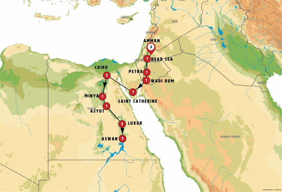 IMPORTANT NOTE: Due to exceptional circumstances or due to a small number of participants, it may happen that we will cross directly from Jordan to Egypt by boat, taking the AQABA- TABA FERRY with a duration of just over two hours. During the ferry crossing, there will be no assistance from any guide.