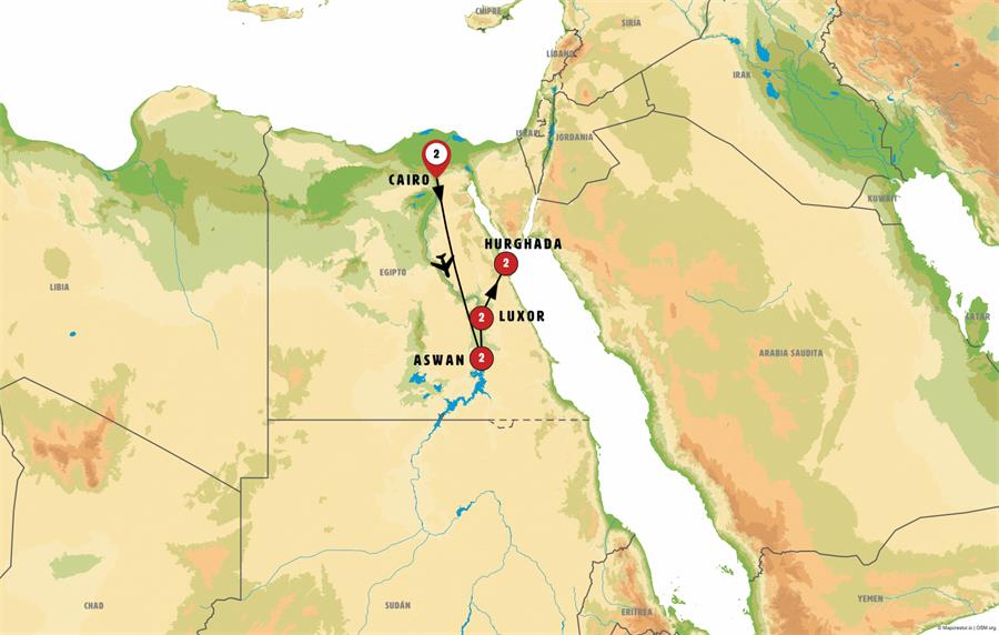 Full day in Hurghada. Free time during the morning to relax in the hotel facilities or go on your own to visit the large aquarium or the museum of Hurghada. After lunch (included), an excursion to get to know the area a little more. We will go to EL GOUNA, a short distance from Hurghada, we are in the most luxurious holiday town in Egypt. Numerous canals and lagoons were opened to access most of the residences by yacht, free time to walk around this exclusive place. After the center of Hurghada, we will stop next to its mosque (we will get to visit it) and walking we will go to the marina, a very touristic and lively area, with shops and restaurants. After free time, return to our hotel. Stay on an all-inclusive basis.