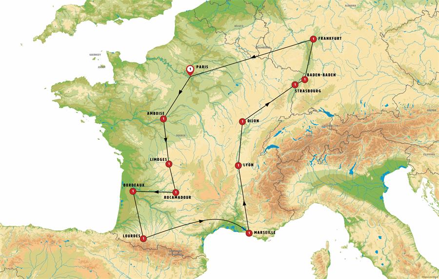 We’ll journey to France, beginning with a visit to the Grand Duchy of Luxembourg, a small country where both German (Luxembourgish dialect) and French are spoken. We’ll arrive in Luxembourg, a cosmopolitan city that seamlessly blends its rich history with the modernity of being a financial hub and a key location for European institutions. Some of its highlights include the old town, a UNESCO World Heritage Site, as well as the city’s fortifications, the Grand Ducal Palace, and the Notre-Dame Cathedral. After lunch, we’ll continue our journey into France. In the heart of the Champagne-producing region, we’ll stop in Reims, where you can marvel at its stunning Gothic cathedral, the historic site of numerous French royal coronations. We’ll arrive in Paris by the end of the day.
