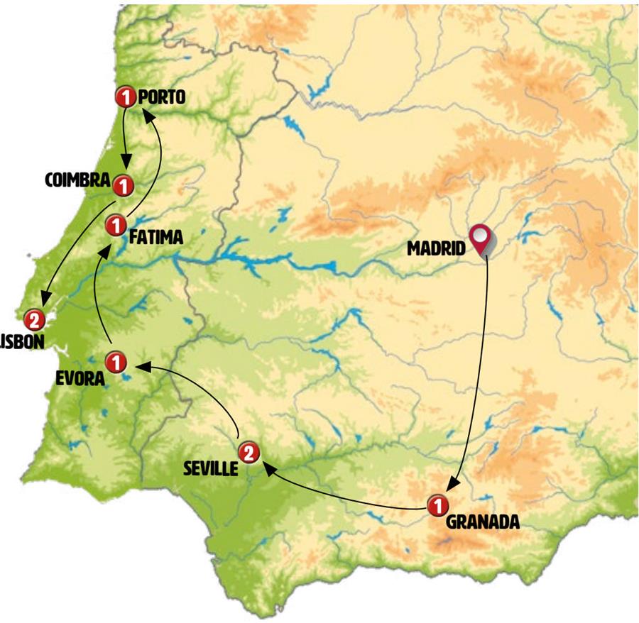 We´ll depart from Seville amidst delightful landscapes of gentle mountains and vast pastures as we head towards Extremadura. In Mérida, admission is included to the Archaeological Ensemble of Mérida, which features a Roman Theater and Amphitheater. This site is renowned for its excellent preservation and its designation as a World Heritage Site. There will be time to enjoy lunch and explore the lively pedestrian historic center, bustling with restaurants. Continuing into Portugal, we´ll arrive in Évora, another UNESCO World Heritage Site known for its white streets, Renaissance palaces, and cathedral. Free time will be available to explore.