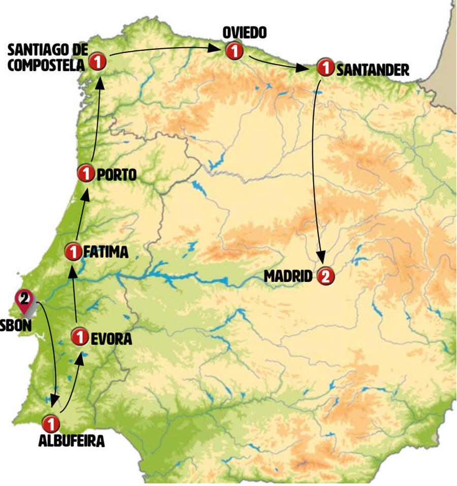 Note: Depending on the number of passengers, the journey from Bilbao to Madrid may be conducted by either regular coach or train service.