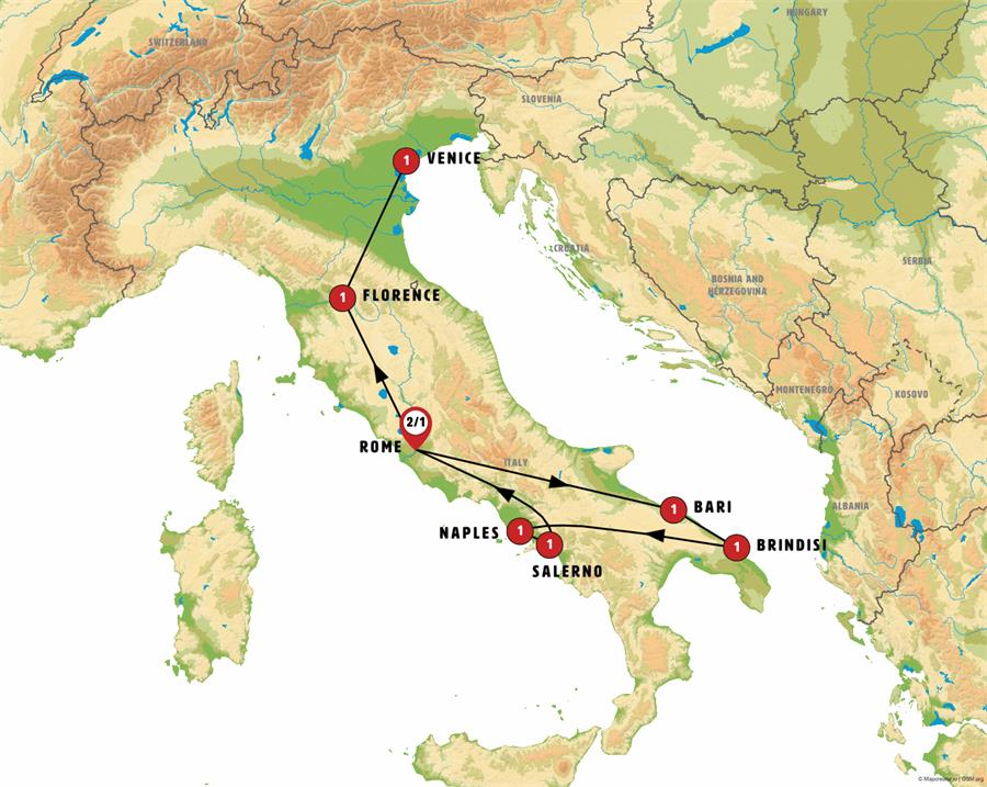 We’ll leave FLORENCE early and head towards northern ITALY, crossing the Apennines. In VENICE, we’ll take a boat transfer to the city center for a walking tour of the San Marco district, where you’ll see the Basilica and the Campanile. We’ll also visit a Murano Glass Factory to admire traditional glass-working techniques. Accommodation will be in the Mestre area.
