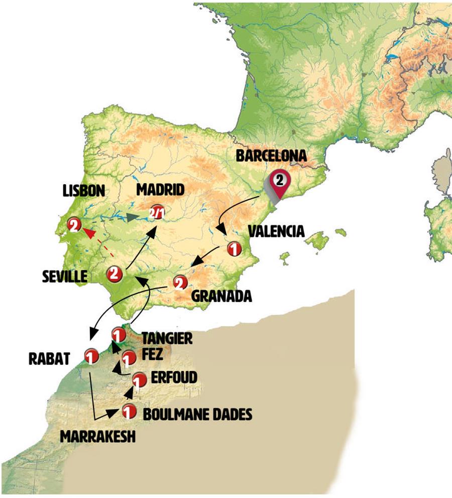 We continue through arid landscapes in the region of MURCIA. Stop en route for lunch.