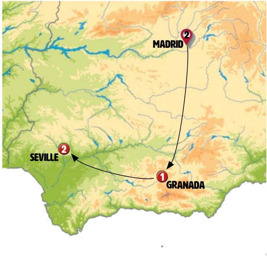 We will depart from Madrid early in the morning, heading south through La Mancha. Our first stop will be in Puerto Lápice, a charming Manchego village evocative of Don Quixote. We will then continue into Andalusia via Despeñaperros, arriving in Granada, where lunch will be included. Free time in the afternoon. We recommend visiting the Cathedral, which houses the tomb of the Catholic Monarchs, or strolling through the Albaicín neighborhood and enjoying the beautiful views of the Alhambra from the Mirador de San Nicolás.