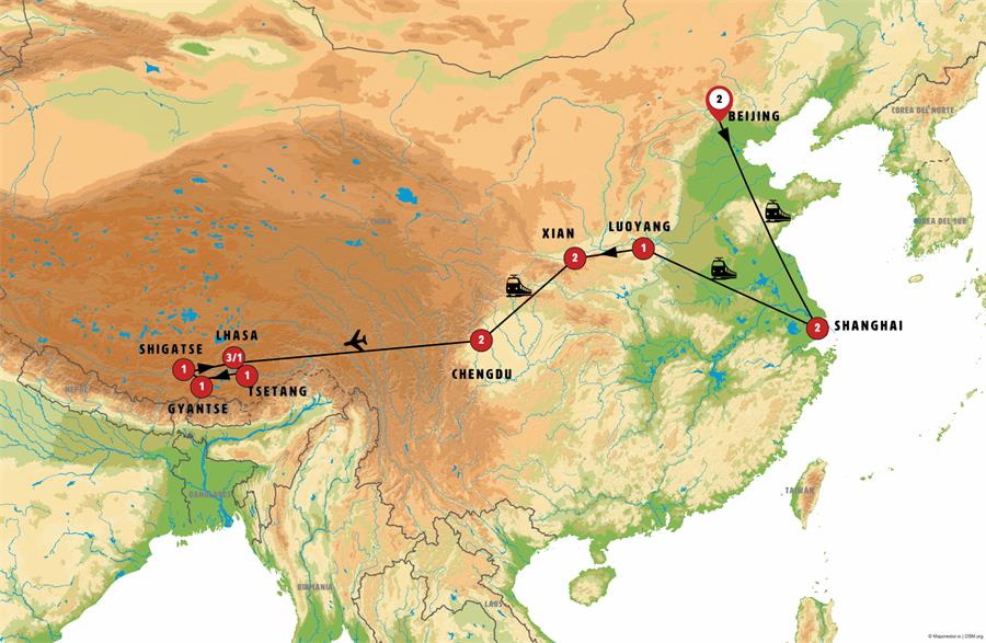 We leave Xian in a very modern high-speed train, and in just over three hours we cover the 700 km that separate us from CHENGDU. On arrival we will go to the Panda Bear research and breeding centre, a reserve where 120 giant pandas and 76 red pandas live. Lunch included. In the afternoon we will take a stroll through the People´s Park, with its small lake, the local people doing Taichi, and its tea houses.-