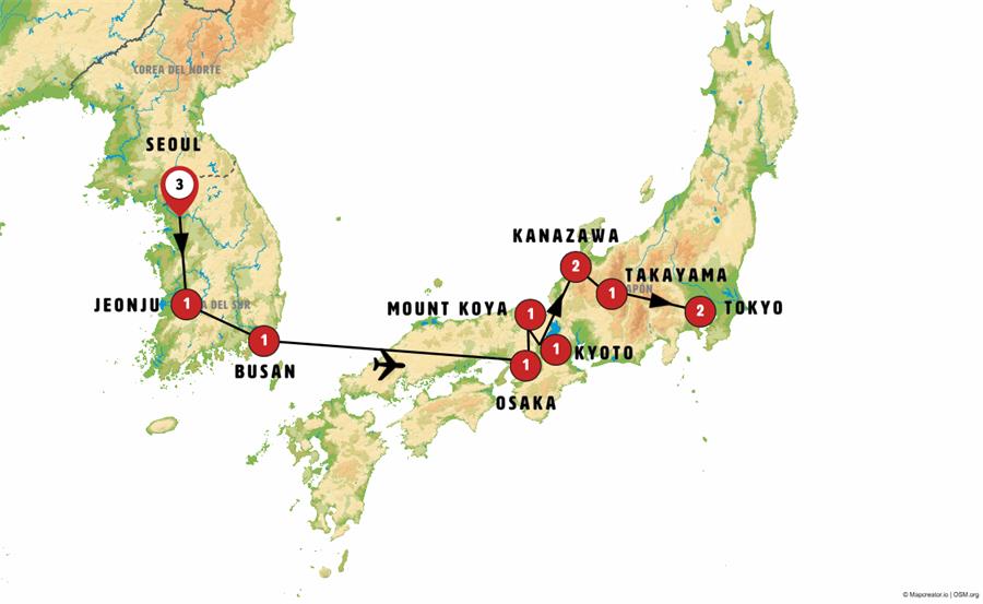 Our first stop will be SUWON, the former capital of Korea, renowned for its impressive UNESCO World Heritage walls. We’ll see these remarkable fortifications and visit Hwaseong Haenggung, the summer palace (entrance included). Lunch will be included. We’ll then continue to JEONJU, where we’ll discover its fascinating historic center (Hanok Village), with its little houses, traditional shops, and art galleries.