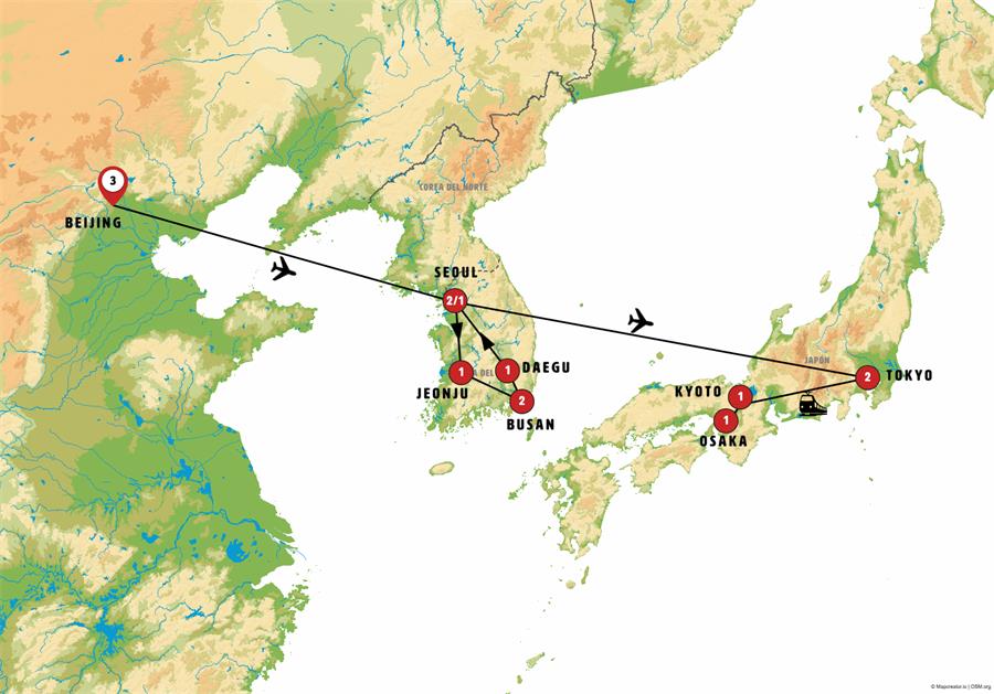 In the evening, we’ll start exploring this fascinating country. With our guide, we’ll take the modern and efficient subway, which you’ll learn how to use, and head to City Hall, a striking building shaped like a tsunami. Across from City Hall, we’ll see the Deoksugung Palace, beautifully lit at night, showcasing Korea´s blend of tradition and modernity. From there, we’ll walk to Myeongdong neighborhood, the liveliest and largest shopping district in the country, whose name means “bright tunnel.” Dinner will be included at a local restaurant.