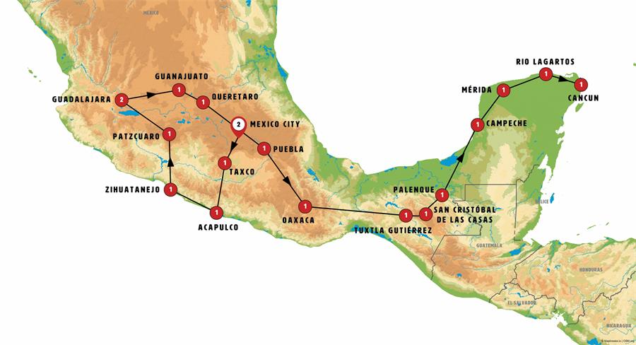 We’ll then continue to GUADALAJARA, the capital of the state of Jalisco, a vibrant colonial city known as the birthplace of Mariachi and Tequila. Arrival will be in the late afternoon.
