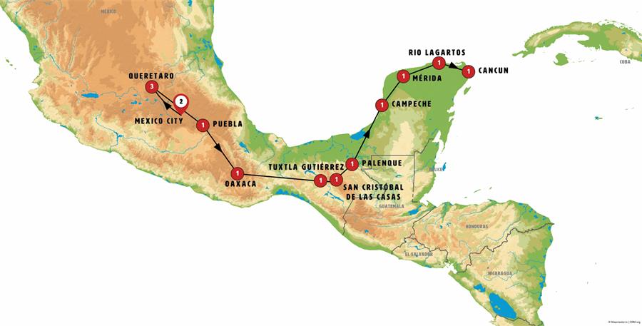 Our services end after breakfast. We suggest that any travellers who wish to extend their stay for a few days can do so resting by the beautiful beaches of Cancun or the Riviera Maya.