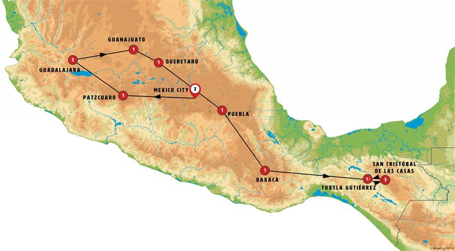 We’ll then continue to GUADALAJARA, the capital of the state of Jalisco, a vibrant colonial city known as the birthplace of Mariachi and Tequila. Arrival will be in the late afternoon.