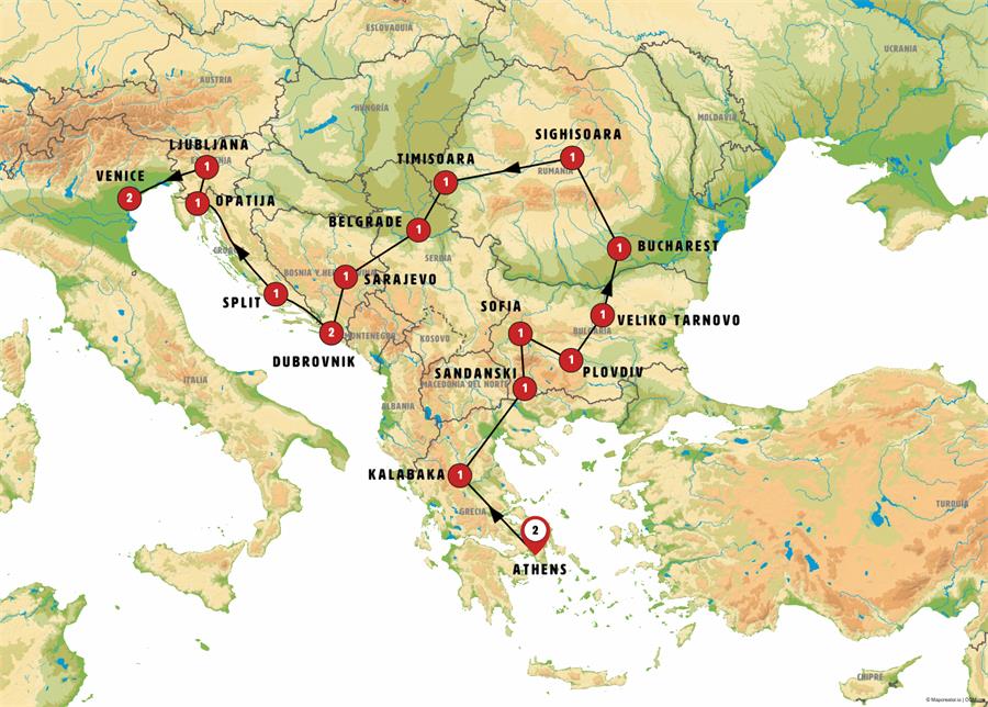 We’ll journey through northern Greece, taking in the beautiful mountain scenery as we head towards the Aegean Sea. Our first stop will be in Thessaloniki, where we’ll have time to explore and enjoy lunch in Greece’s second-largest city. Afterward, we’ll continue into Bulgaria, crossing the border into the region of Bulgarian Macedonia. Here, we’ll visit Melnik, a picturesque museum town nestled among stunning landscapes and renowned for its wine production. We’ll conclude our day in Sandanski, a charming spa town known as the birthplace of Spartacus where we’ll stay for the night. Dinner will be included.
